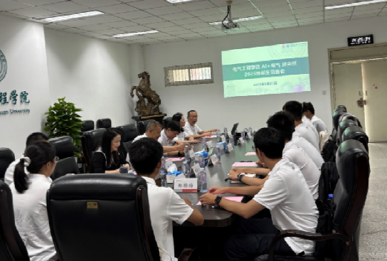2025年9月27日下午,学院首届“AI+电气”拔尖班学生见面会在学院会议室基教A220举行。学院党委书记赵昱辉、院长肖先勇,校学工部吴玉章学生工作科科长何蕾,学院党委副书记戴婷婷、副院长李长松、院长助理王栋、2025级辅导员任杰,以及8位入选学院首届“AI+电气”拔尖班学生参加了会议。