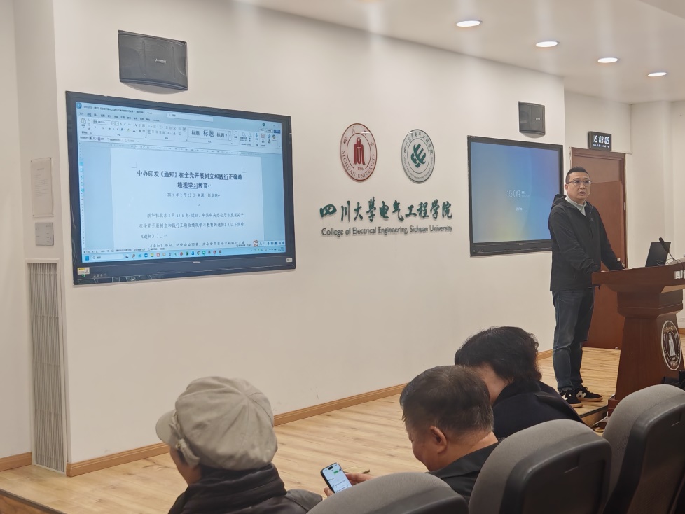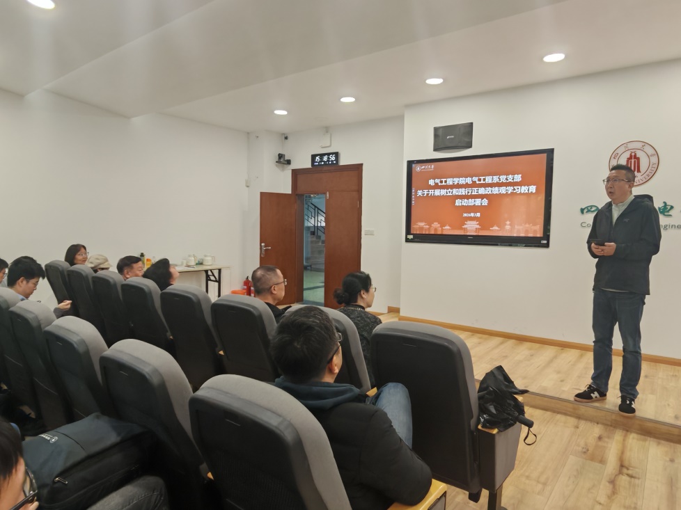 随后,党支部书记陈实就支部开展树立和践行正确政绩观学习教育作出全面部署。一是深化理论武装,通过“三会一课”、主题党日、专题研讨、读书交流等多种形式,开展分层分类学习,发挥“领头雁”的示范引领作用,带动全体党员深学细悟;二是坚持问题导向,聚焦政绩观偏差突出问题,组织党员结合岗位实际深入查摆、精准整改,建立整改台账,做到边学习、边对照、边检视、边整改;三是推动学用结合,将学习教育与电气工程专业建设、科研攻关、学生培养、志愿服务等中心工作深度融合,把学习成效转化为推动系部高质量发展的实际行动;四是强化宣传引导,充分利用学院网站、微信公众号等载体,宣传学习教育成效和党员先进典型,营造“学政绩观、悟政绩观、践政绩观”的浓厚氛围。
