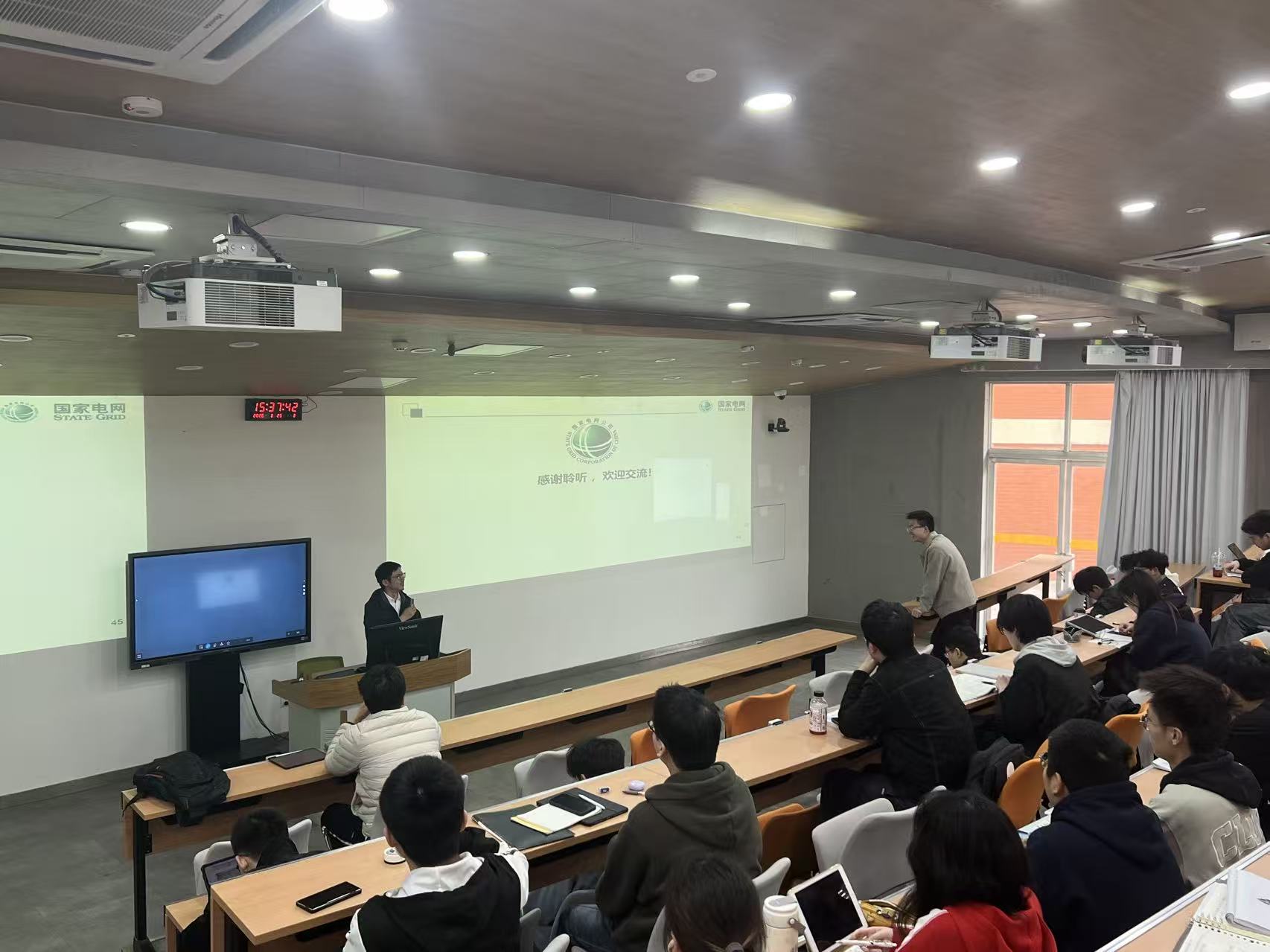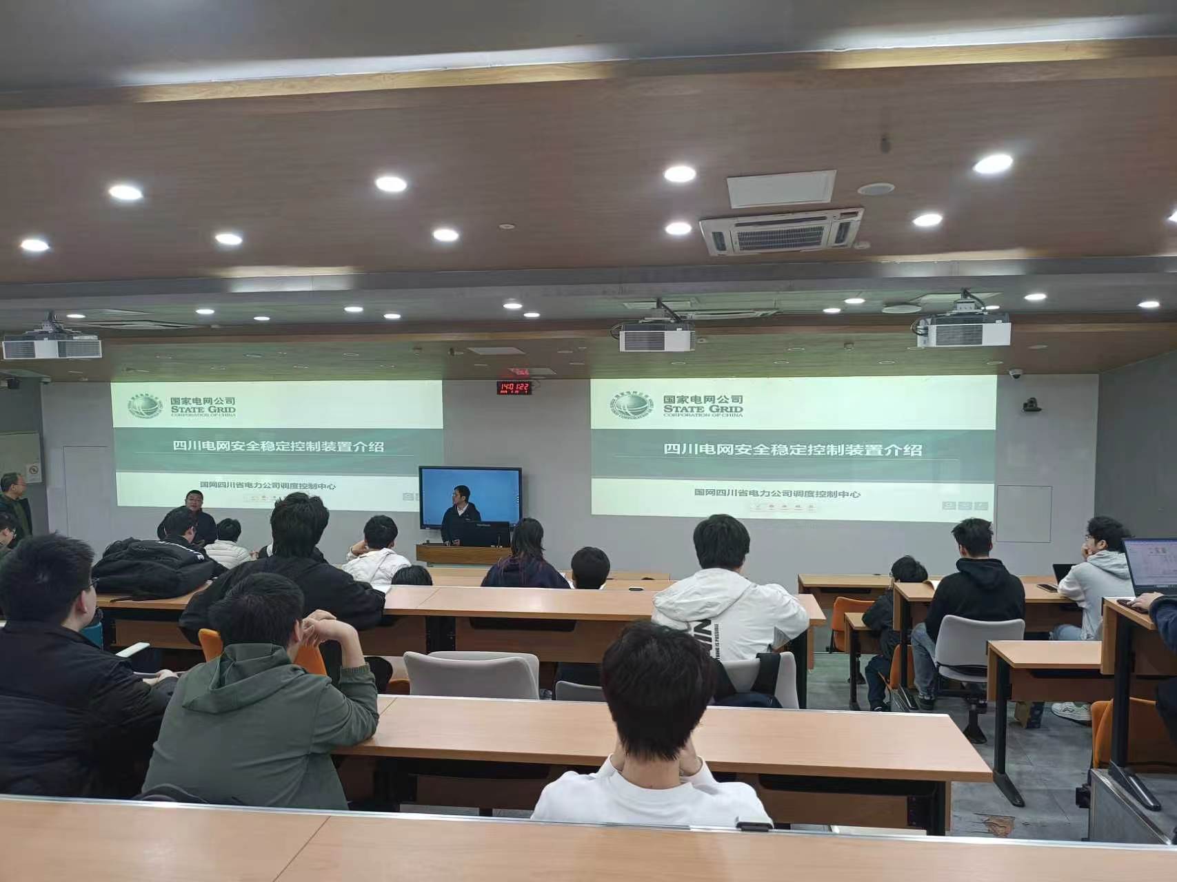2026年3月25日下午14:0091黑料 望江校区基础教学楼C101教室,《电力系统安控与自动装置》课程开展了本学期第一次企业专家进课堂活动。国网四川省电力公司调度控制中心保护处蒋星燃专家应邀作为主讲人,开展“从电力系统‘三道防线’看四川电网”的学术讲座。郑子萱教授主持本次活动。