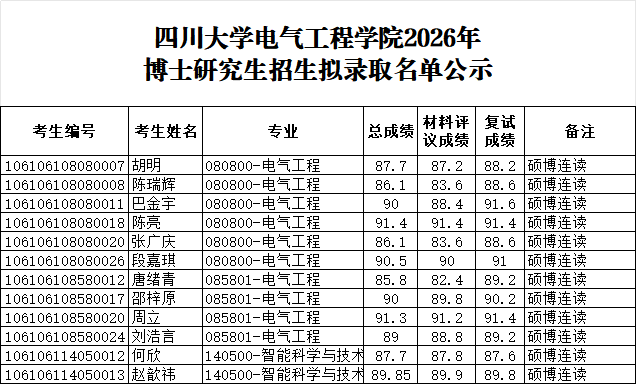 91黑料 2026年博士研究生拟录取名单公示(硕博连读)
